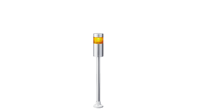 The Patlite LR LED pre-configured beacon single tower light is featuring a modular design. The product has an silver body colour. It has a supply voltage of 24VDC. The tower light is base mount. It has an amber LED. A sleek, smooth form factor and enhanced body construction for performance in harsh environments._x000D_