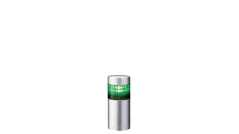 The Patlite LR LED pre-configured beacon single tower light is featuring a modular design. The product has a silver body colour. It has a supply voltage of 24VDC. The tower light is base mount. It has a green LED. A sleek, smooth form factor and enhanced body construction for performance in harsh environments._x000D_
