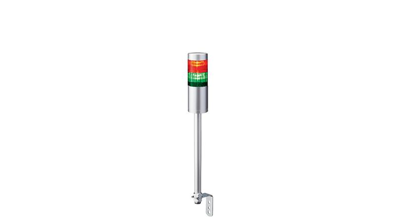 The Patlite LR LED pre-configured beacon single tower light is featuring a modular design. The product has a silver body colour. It has a supply voltage of 24VDC. The tower light is base mount. It has red and green LEDs. A sleek, smooth form factor and enhanced body construction for performance in harsh environments._x000D_