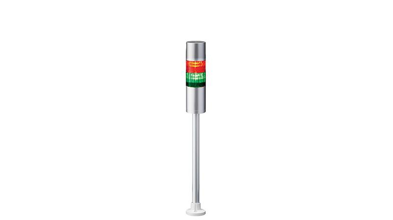 The Patlite LR LED pre-configured beacon single tower light is featuring a modular design. The product has a silver body colour. It has a supply voltage of 24VDC. The tower light is base mount. It has red and green LED. A sleek, smooth form factor and enhanced body construction for performance in harsh environments._x000D_