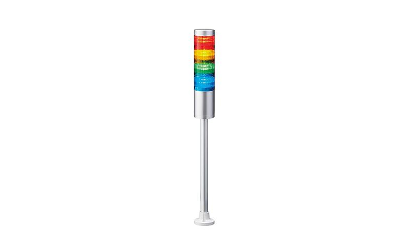 The Patlite LR LED pre-configured beacon single tower light is featuring a modular design. The product has a silver body colour. It has a supply voltage of 24VDC. The tower light is base mount. It has red, amber, green and blue LEDs. A sleek, smooth form factor and enhanced body construction for performance in harsh environments._x000D_