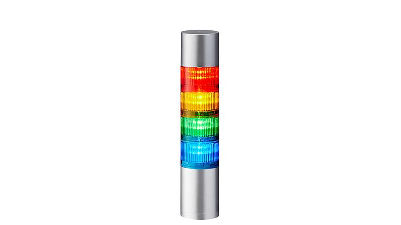 The Patlite LR LED pre-configured beacon single tower light is featuring a modular design. The product has a silver body colour. It has a supply voltage of 24VDC. The tower light is base mount. It has red, amber, green and blue LEDs. A sleek, smooth form factor and enhanced body construction for performance in harsh environments._x000D_
