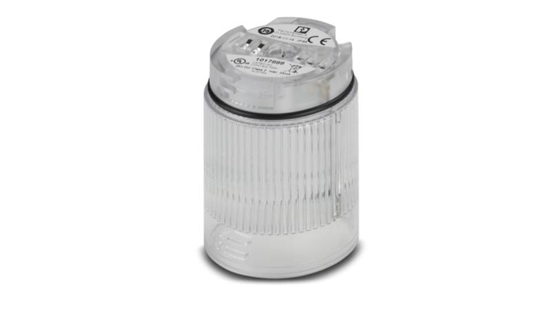 The Phoenix Contact optical signal element is designed to be part of a modular signal tower. The signal tower can be combined as desired, from a maximum of five signal elements. A bayonet locking system establishes the mechanical and electrical connection between the elements. The connection elements with spring-cage connection can be used for electrical connection of the signal tower._x000D_
