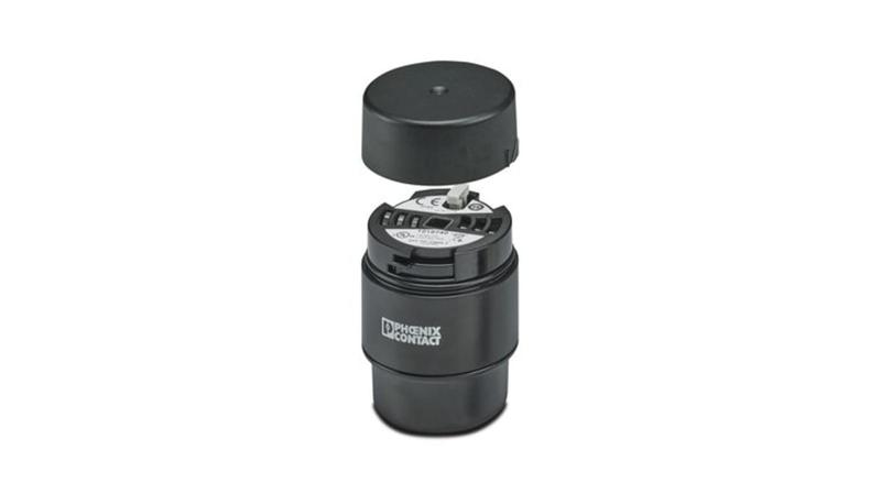 The Phoenix Contact connection element is base for horizontal and third-party tube assembly and is intended to be part of a modular signal tower and is used to electrically connect the tower. A bayonet locking system establishes the mechanical and electrical connection between the elements. It is used for installing on a mounting surface (floor), junction box or bracket._x000D_