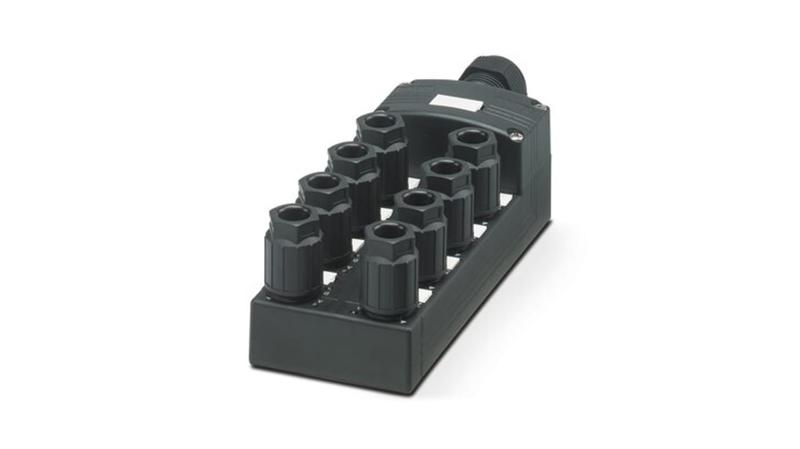 The Phoenix contact SACB-8 Sensor/actuator box uses a Quick on connection method. It rated for 24 VDC. The number of slots is 8 and the number of positions is 5. The slot assignment is double. The status display is not available. The master cable connection is a Push-in connection 180°. It does not have any shielding. When connecting 5 conductors, maximum of 0.5 mm² can be connected. It is convenient with increased machine availability because of its quick and easy diagnostics. It has innovative and time-saving assembly with insulation displacement connection._x000D_