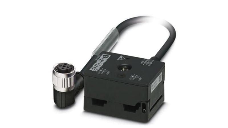 The Phoenix Contact Distributor is a AS Interface distributor with a high degree of protection for a branch from two flat ribbon conductors to 2.0 m PUR round cable with angled M12 SPEEDCON socket._x000D_