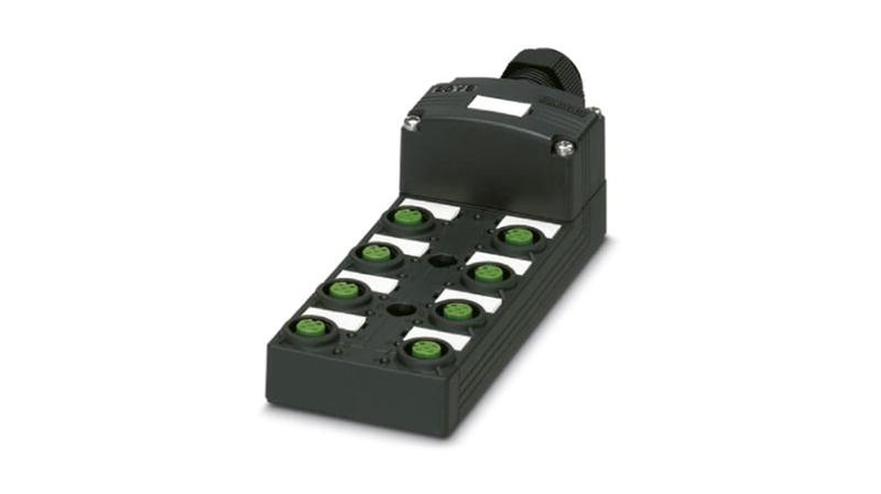 Sensor/actuator box, application: Standard, connection method: M12-SPEEDCON-socket Plastic, number of slots: 8, number of positions: 5, coding: A - standard, slot assignment: Double, status display: yes, pnp_x000D_