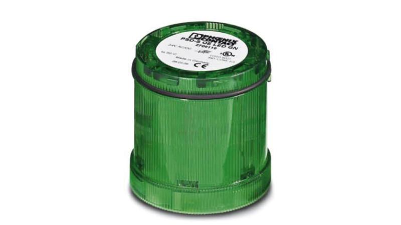 The Phoenix Contact Optical element is LED permanent light element of voltage 24 V AC/DC and the color of light is green. It can be freely combined. Minimum LED service life of 50,000 h._x000D_