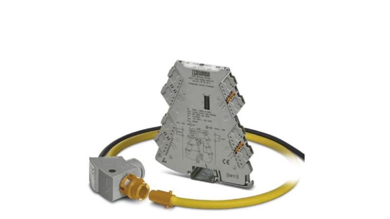 Set consisting of a 4-way signal conditioner with screw connection technology and a Rogowski coil 450 mm in length/140 mm in diameter for AC current measurement on busbars and power lines. The signal conditioner outputs 8 different standard signals on the output side and has one switching output.