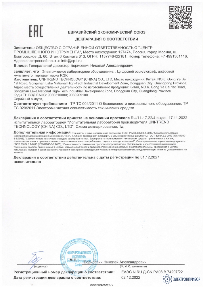 Характеристики Цифровой осциллограф RGK DO-1002