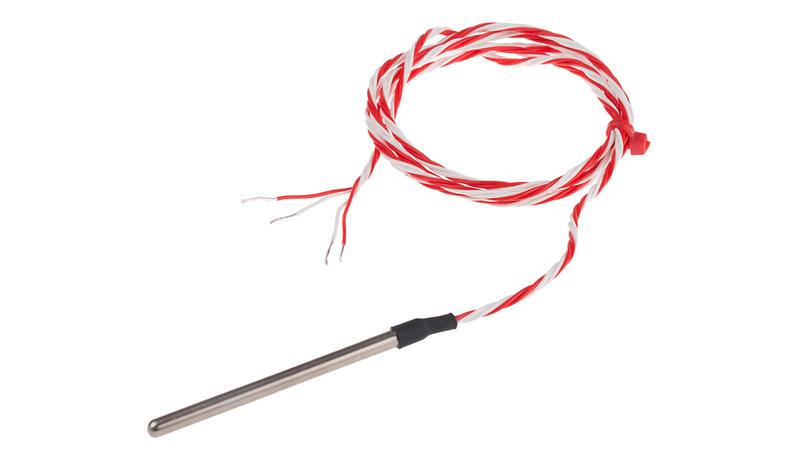 A Pt100 probe is the most rugged form of RTD. The Pt100 temperature sensor element is mounted inside a metal sheath or probe. This protects it from being damaged by the surrounding environment when it is inserted into the process to be measured. The other end of the probe is terminated by 4 insulated wire tails which are connected to the temperature measuring equipment._x000D_