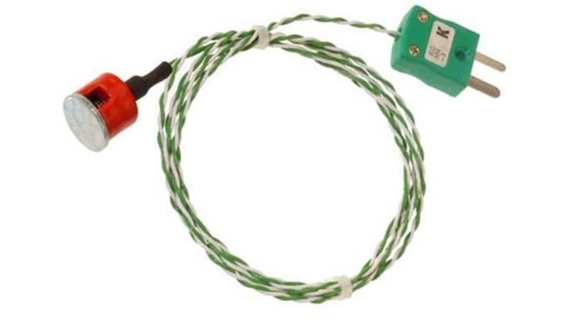 This thermocouple has a powerful half-inch magnetic disk that allows it to securely attach to any ferro-magnetic surface. Once attached, the thermocouple allows you to quickly and accurately measure the temperature of the surface within a broad range of -50°C to +250°C. The thermocouple junction is spring-loaded for added strength._x000D_