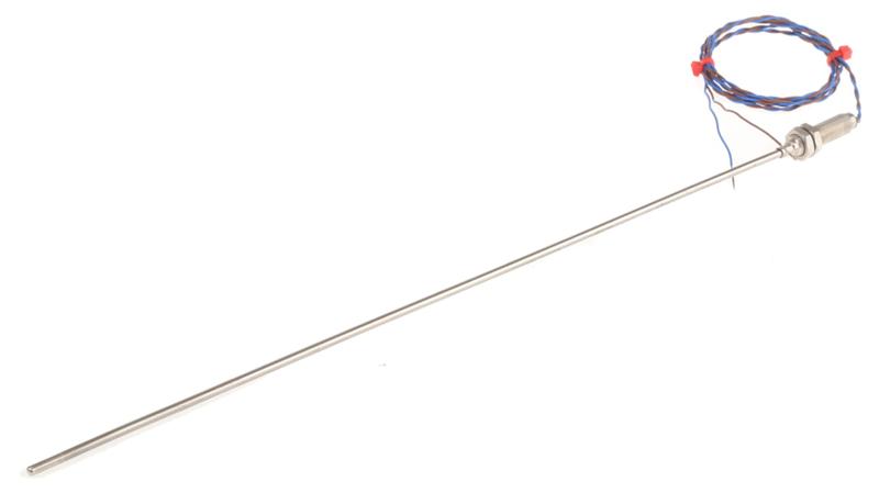 1m of PTFE insulated lead with M8 threaded connection to the thermocouple and stainless steel sheath. 316 stainless steel probe, 3mm. Temp. range 0 to +1000°C. Gland available 1/8 BSP, see stock no. 158-610_x000D_