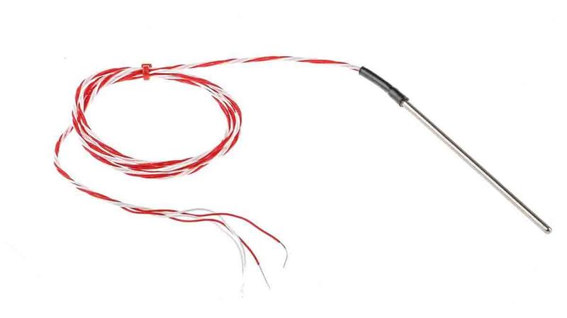 A Pt100 probe is the most rugged form of RTD. The Pt100 temperature sensor element is mounted inside a metal sheath or probe. This protects it from being damaged by the surrounding environment when it is inserted into the process to be measured. The other end of the probe is terminated by 4 insulated wire tails which are connected to the temperature measuring equipment._x000D_