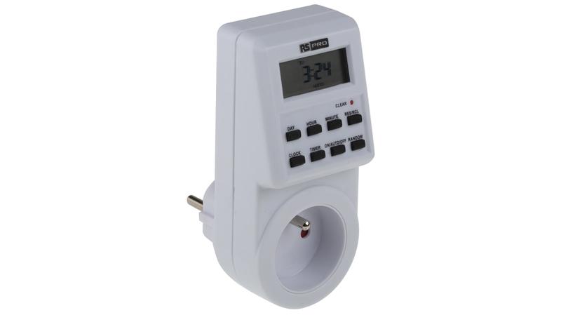 The RS PRO timer switch is automatically turn your electrical appliances on and off. The energy-saving appliance is made for residential and commercial settings from laundry rooms to public gardens. For convenience, you can choose from a 12- or 24-hour clock. It's easy to adjust the electrical device to either standard or summer time using the readily accessible buttons on the front panel. You'll find a two-pin, Type C European adapter attached to the unit, so it's suitable for use in countries such as Germany and Italy._x000D_