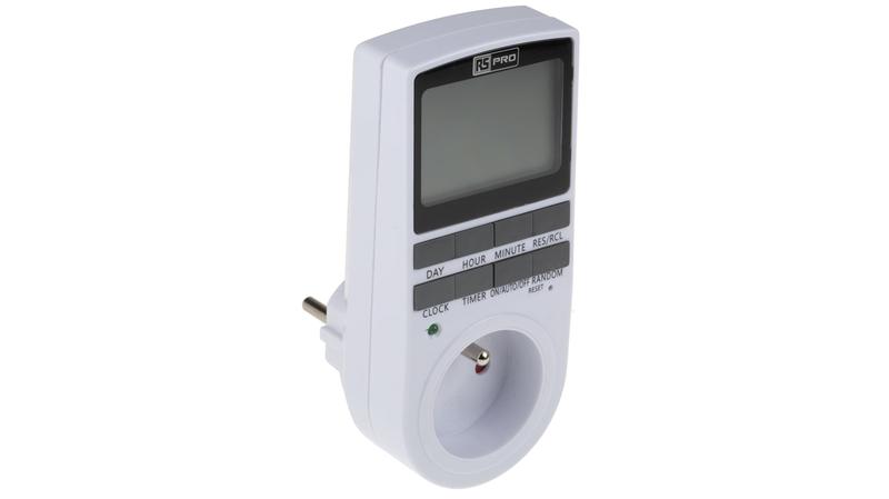 This high quality plug in timer from RS PRO is a robust and energy efficient solution for electrical household appliances, allowing you to turn devices on or off automatically to save energy and money on utility bills. The timer features a 12 or 24 hour system with up to 10 programmable on & off settings per day and features a built-in battery to operate the clock. The settings of the timer include hour, minute and day allowing you to pint point when to activate the plug regardless. The timer features a clear 2.3" LCD display screen with labelled buttons ensuring a highly user friendly experience. This plug in timer from RS PRO also features a random setting which is an excellent security measure that turns your lights on and off at random intervals, ideal for when you're on vacation._x000D_