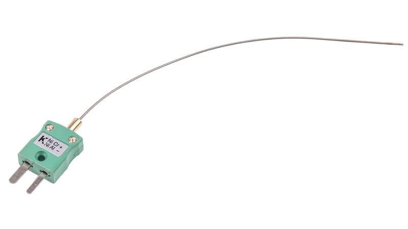RS Pro IEC Mineral Insulated Type K Thermocouple with Miniature Plug_x000D_ From RS Pro a range of type K thermocouple temperature sensors or probes that conform to IEC standards. These thermocouple temperature probes have a durable construction and feature a 310 stainless steel mineral insulated flexible sheath that can be bent and formed to suit a wide range of applications. The thermocouple has a single element insulated junction for a reduction in electrical interference. One end of the thermocouple is terminated with a miniature flat pin plug for a quick and easy connection_x000D_ How does a Thermocouple Work?_x000D_ A thermocouple is a sensor used to measure temperature in a range of different processes and consists of two wire legs made from different metals joined together at their two ends to form two junctions. The hot, or measuring junction is connected to the body whose temperature is going to be measured. The cold junction or reference junction is connected to a body of known temperature. When the measuring junction is placed on something hot a voltage or potential difference between this and the reference junction occurs. This voltage can then be converted into a temperature measurement using thermocouple reference tables. This process is also known as the Seebeck Effect_x000D_ What is an Insulated Junction?_x000D_ An insulated or ungrounded junction is where the thermocouple wires are welded together and fully covered by but insulated from the outer protective sheath, often by the use of mineral insulation. The advantage of this is that there is a reduction in electrical interference and a stable reading_x000D_ What is Mineral Insulation?_x000D_ Mineral insulation is used to insulate the thermocouple wires from one another and from the metal probe sheath that surrounds them. The sheath is filled with a highly compacted magnesium oxide powder that prevents the conductors from making contact with one another other than at the fixed junction. The high density of the mineral powder enables the thermocouple to have a rapid response as it promotes a fast heat transfer between the conductor and the sheath. Mineral insulation also helps to protect the thermocouple wire from environmental damage including corrosion, prevents electrical interference and allows the cable to be flexible whilst maintaining its mechanical strength_x000D_ Key Features and Benefits_x000D_ • Insulated hot junction for reduced electrical interference_x000D_ • Mineral insulation for flexibility, durability and high performance_x000D_ • Conforms to IEC standards_x000D_ • Flexible, can be bent into shape for easy installation_x000D_ • 310 stainless steel probe sheath for resistance to corrosion and oxidation_x000D_ • Miniature plug termination for a quick and easy connection_x000D_ Applications_x000D_ Type K Thermocouples (Nickel-Chromium / Nickel-Aluminium) are the most common type of thermocouple and are both accurate and flexible with a wide temperature range. Typical applications for these mineral insulated Type-K thermocouple probes include heat exchangers, power stations, brick and cement kilns, heat treatment and annealing furnaces, thermostats, food thermometers, vehicle diagnostics and in laboratories