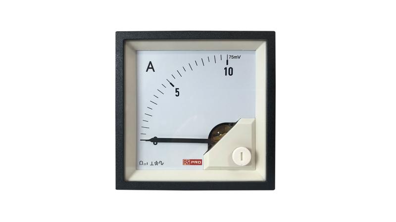 The RS PRO 68mm x 68mm cut-out DC analogue panel voltmeter has a measurement range of 0mV to 75mV input (SHUNT) and SC 0A to 10A. The DIN style panel meter comprises permanent magnet moving coil movements and it indicates an average value. The moving coil movement consists of a magnet, an aluminium coil suspended on pivots, a hairspring, and a jewel mechanism. The scales are linear and calibrated down to zero. High currents are measured with separate shunts attached on the rear side of the meter. The meter is housed in a moulded polycarbonate case._x000D_