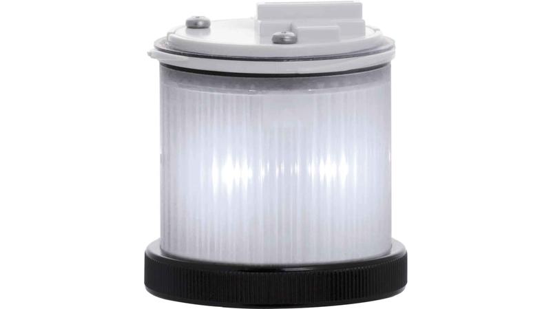 The RS PRO 50mm clear light module has a steady and flashing light effect. It provides signalling solutions for various kinds of control and automation applications. This lighting tower offers safety productivity quick installation and rapid mounting features for all signalling needs. The prewiring enables easy selection of the colours (or functions) and allows you to change the signal output of the individual coloured modules. The electrical connection is made through connector creating an electrical contact in total safety. Its light output can be set to steady or flashing via an internal jumper link. Additional colours and sounder modules are also available and can be added to the preassembled signal towers. The module can be assembled and disassembled quickly and easily without tools and without the need to disconnect the power supply._x000D_