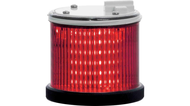 The RS PRO 70mm red LED module has a steady lighting effect. It is designed to provide signalling solutions, improving the safety and the productivity of your control and automation equipment. This signal tower can be assembled to a maximum of five light modules or four light modules and a sounder module. The electrical connection is made through a touch-proof connector, creating an electrical contact in total safety. All these modules can be assembled and disassembled quickly and easily without tools and the need to disconnect the power supply. This signal tower is quick to install and provides a solution for all your signalling needs. Additional LED modules or the sounder module can then be plugged into this module._x000D_