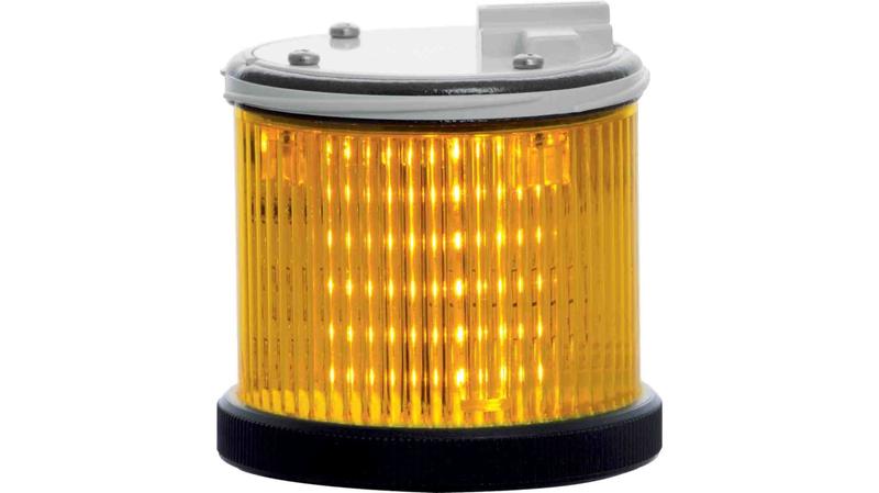 The RS PRO 70mm yellow LED module has a steady lighting effect. It is designed to provide signalling solutions, improving the safety and the productivity of your control and automation equipment. This signal tower can be assembled to a maximum of five light modules or four light modules and a sounder module. The electrical connection is made through a touch-proof connector, creating an electrical contact in total safety. All these modules can be assembled and disassembled quickly and easily without tools and the need to disconnect the power supply. This signal tower is quick to install and provides a solution for all your signalling needs. Additional LED modules or the sounder module can then be plugged into this module._x000D_