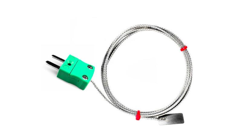 The RS Pro leaf thermocouple type J with mounted on a stainless-steel shim._x000D_ Thermocouple mounted on a stainless-steel shim_x000D_ Junction grounded at tip for fast response