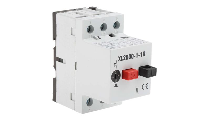 This motor protection switch protects against overloading or failure due to an external conductor. It monitors current consumption and acts as a circuit breaker when the current reaches a specific limit. A protection switch is commonly used on small machines._x000D_