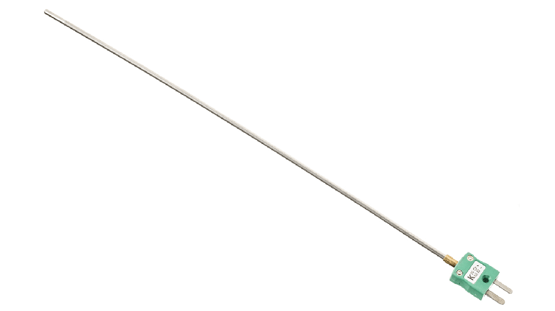 RS Pro IEC Mineral Insulated Type K Thermocouple with Miniature Plug_x000D_ From RS Pro a range of type K thermocouple temperature sensors or probes that conform to IEC standards. These thermocouple temperature probes have a durable construction and feature a 310 stainless steel mineral insulated flexible sheath that can be bent and formed to suit a wide range of applications. The thermocouple has a single element insulated junction for a reduction in electrical interference. One end of the thermocouple is terminated with a miniature flat pin plug for a quick and easy connection_x000D_ How does a Thermocouple Work?_x000D_ A thermocouple is a sensor used to measure temperature in a range of different processes and consists of two wire legs made from different metals joined together at their two ends to form two junctions. The hot, or measuring junction is connected to the body whose temperature is going to be measured. The cold junction or reference junction is connected to a body of known temperature. When the measuring junction is placed on something hot a voltage or potential difference between this and the reference junction occurs. This voltage can then be converted into a temperature measurement using thermocouple reference tables. This process is also known as the Seebeck Effect_x000D_ What is an Insulated Junction?_x000D_ An insulated or ungrounded junction is where the thermocouple wires are welded together and fully covered by but insulated from the outer protective sheath, often by the use of mineral insulation. The advantage of this is that there is a reduction in electrical interference and a stable reading_x000D_ What is Mineral Insulation?_x000D_ Mineral insulation is used to insulate the thermocouple wires from one another and from the metal probe sheath that surrounds them. The sheath is filled with a highly compacted magnesium oxide powder that prevents the conductors from making contact with one another other than at the fixed junction. The high density of the mineral powder enables the thermocouple to have a rapid response as it promotes a fast heat transfer between the conductor and the sheath. Mineral insulation also helps to protect the thermocouple wire from environmental damage including corrosion, prevents electrical interference and allows the cable to be flexible whilst maintaining its mechanical strength_x000D_ Key Features and Benefits_x000D_ • Insulated hot junction for reduced electrical interference_x000D_ • Mineral insulation for flexibility, durability and high performance_x000D_ • Conforms to IEC standards_x000D_ • Flexible, can be bent into shape for easy installation_x000D_ • 310 stainless steel probe sheath for resistance to corrosion and oxidation_x000D_ • Miniature plug termination for a quick and easy connection_x000D_ Applications_x000D_ Type K Thermocouples (Nickel-Chromium / Nickel-Aluminium) are the most common type of thermocouple and are both accurate and flexible with a wide temperature range. Typical applications for these mineral insulated Type-K thermocouple probes include heat exchangers, power stations, brick and cement kilns, heat treatment and annealing furnaces, thermostats, food thermometers, vehicle diagnostics and in laboratories