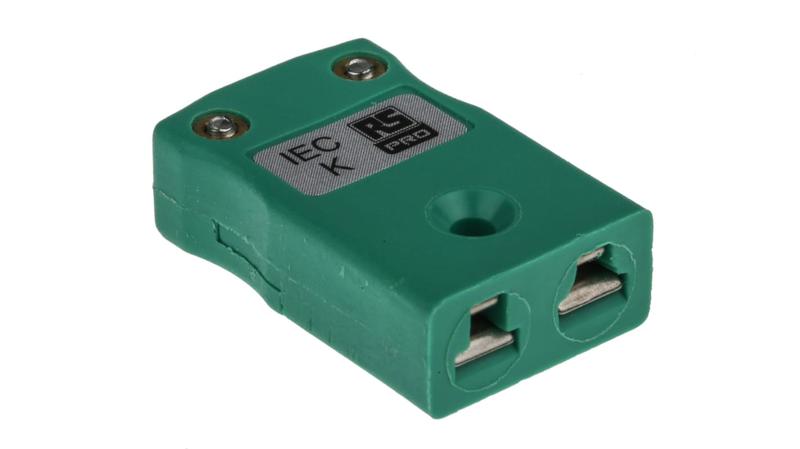 From RS PRO a miniature in-line thermocouple socket connector which is colour coded in accordance with IEC specification. This thermocouple socket is ideal for connecting your thermocouple probe or wire terminals to extension or compensating cables. This female socket also provides a quick, safe and error-free way of replacing your existing thermocouples. The socket housing is made from a rugged glass-filled thermoplastic which is impact resistant and able to withstand high temperatures of up to 220°C. The terminals on this female connector accept polarized flat pin contacts to ensure an accurate connection. The housing is IEC colour coded with the thermocouple type clearly indicated on the front for easy identification._x000D_