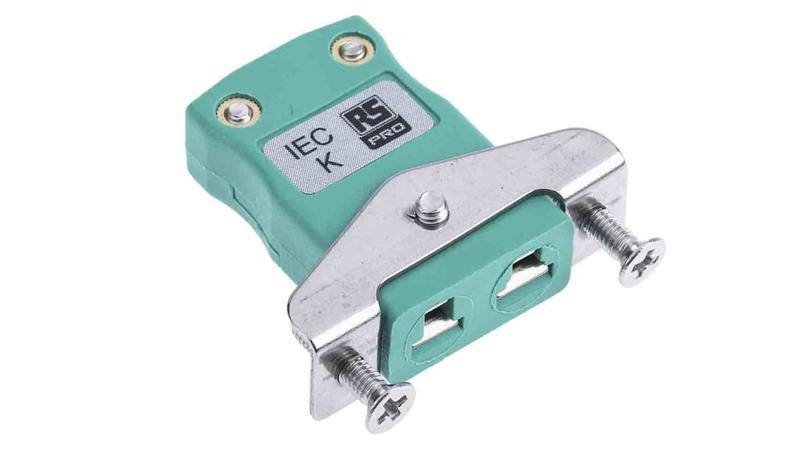 From RS PRO a miniature panel mount thermocouple socket connector colour coded in accordance with IEC. This female connector features stainless steel brackets either side allowing it to be quickly and securely fixed to the panel. This thermocouple connector is ideal for connecting your thermocouple probe or wire terminals to extension or compensating cables as well as providing a quick, safe and error-free way of replacing your existing thermocouples. The thermocouple connector housing is made from a rugged glass-filled thermoplastic which is impact resistant and able to withstand high temperatures of up to 220°C. The contacts on this female connector accept flat polarised pins to ensure an accurate connection. The colour coded housing has the thermocouple type clearly indicated on the front for easy identification._x000D_