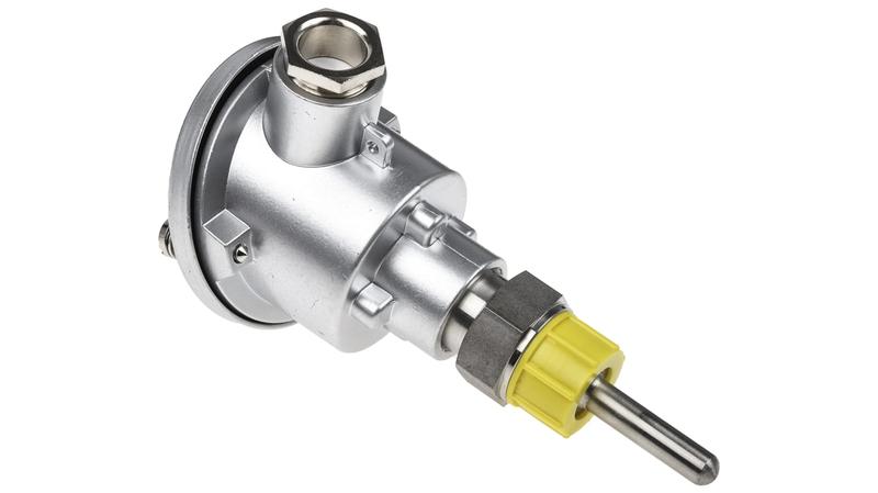 From RS Pro a high-quality heavy duty Pt100 PRT (Platinum Resistance Thermometer) or RTD (Resistance Temperature Detector) sensing probe with a terminal head. This RTD probe has a robust construction with the sensing element encased in a rigid metal sheath. The terminals of the sensor are enclosed in an aluminium terminal head which protects to them against harsh environments. This heavy duty platinum resistance thermometer provides accurate and reliable temperature measurement for a wide range of applications._x000D_