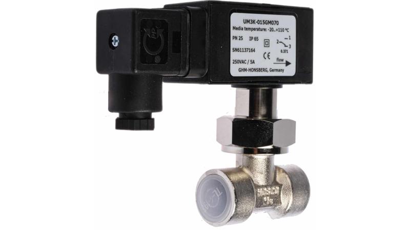 As the flow rate reaches the preset value, the spring-supported paddle's built-in magnet approaches another magnet outside the flow chamber. This second magnet activates a microswitch that alters the flow of a liquid or gas to keep it within a preset range. The switch is equipped with a 1/2 in British Standard Pipe (BSP) female connection._x000D_