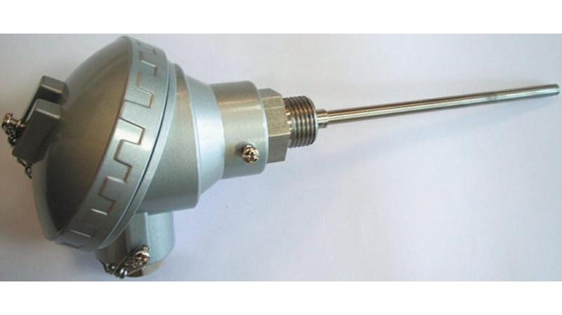 A terminal head is designed to provide access to the connections between the sensor and instrument wiring and providing protection from the elements. The KNE terminal head on this thermocouple has an aluminium finish and is IP67 rated. Built into the head is a compensating terminal block and an M20 cable gland for connection to the external cable. A BSP connection at the base of the head is used for connection to the thermocouple probe. The terminating head also features a screw cap and retaining chain_x000D_