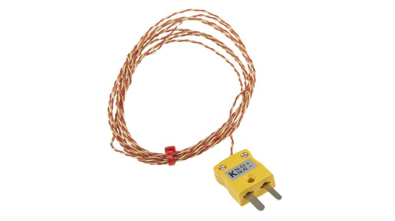RS Pro PFA Type K and T Exposed Welded Tip Thermocouples_x000D_ From RS Pro a range of type T and K bare wire thermocouple temperature sensors with a tolerance to ANSI MC96.1 class 1 for optimum accuracy. These thermocouple temperature sensors have a durable construction a welded exposed junction for a fast response time. One end of the thermocouple is terminated with a miniature plug for a quick and easy connection. The twin twisted leads of these thermocouple sensors are insulated with durable Teflon PFA._x000D_ How does a Thermocouple Work?_x000D_ A thermocouple is a sensor used to measure temperature in a range of different processes and consists of two wire legs made from different metals joined together at their two ends to form two junctions. The hot, or measuring junction is connected to the body whose temperature is going to be measured. The cold junction or reference junction is connected to a body of known temperature. When the measuring junction is placed on something hot a voltage or potential difference between this and the reference junction occurs. This voltage can then be converted into a temperature measurement using thermocouple reference tables. This process is also known as the Seebeck Effect_x000D_ What is a Welded Exposed Junction?_x000D_ A welded exposed junction is where the thermocouple wires are welded together but are not surrounded by the outer sheath. The ends of the wire are directly inserted into the process. This means the thermocouple has a high sensitivity and response time. Welded exposed junctions are more prone to corrosion and are recommended for measuring flowing or static non-corrosive gas temperatures_x000D_ Key Features and Benefits_x000D_ • Welded, exposed junction for fast response times_x000D_ • Durable construction with PFA insulation for resistance to oils, acid, fluids and good mechanical strength and flexibility_x000D_ • Tolerance to ANSI MC96.1 Class 1 for optimum accuracy_x000D_ • Miniature plug termination for quick and easy connection_x000D_ • Temperature range of -75 to +250°C_x000D_ Applications_x000D_ These grounded junction Type K and T bare wire thermocouples are ideal for test and development applications including test and measurement, temperature mapping and OEM applications_x000D_ Standards_x000D_ Class 1 cable specification in accordance with BS EN 60584-3:2008_x000D_ ANSI MC96.1 class 1