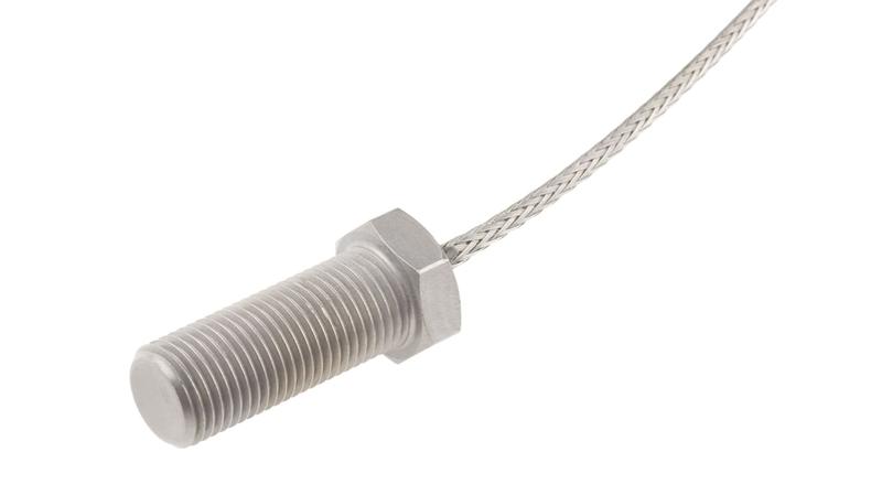 Bolt thermocouples with 2m of glass fibre stainless steel overbraided cable, available in type K or J. Bolt sensors are generally screwed into the surface which normally increases the speed of response and sensitivity of the measurement.