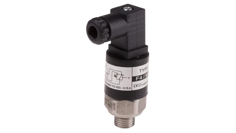 Stainless steel adjustable pressure switches from RS. Available for both hydraulic and pneumatic applications, pressure switches supply an electrical signal once the system has reached a designated pressure. The switching pressure can be adjusted to suit various set points simply by rotating a screw in the centre of the pressure switch._x000D_