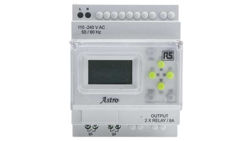 RS Pro Astro Digital time switch is dynamic and has accurate control based on astronomical mathematics. It has 12/24 h display and features an easy manual override facility._x000D_