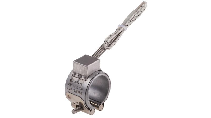 Nozzle Heaters_x000D_ RS Pro Nozzle heaters are designed with the highest quality materials used for optimal performance. The heaters are most commonly used in the plastic industry but are also suitable to use in applications of up to 1000°F._x000D_ • High temperature oxidation resistance metal sheath_x000D_ • Highest grade mica insulation provides excellent electrical insulation at high temperature and is resistant to moisture_x000D_ • Clamping band is low thermal expansion steel construction designed to maintain clamping pressure at elevated temperatures_x000D_ • Nickel/Chromium resistance wire evenly wound for uniform heat distribution and reliable accuracy_x000D_ • Standard 10 in fibreglass lead wire_x000D_ Multi-Purpose Process Heaters_x000D_ In order to obtain optimum performance from these products, it is advised that temperature sensing and control elements be used with them._x000D_ Warning_x000D_ These heaters shall only be used where adequate electrical, thermal and mechanical barriers are provided to prevent access to hazardous parts without the use of a tool.