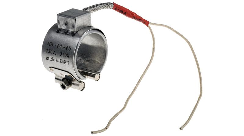 Nozzle Heaters_x000D_ RS Pro Nozzle heaters are designed with the highest quality materials used for optimal performance. The heaters are most commonly used in the plastic industry but are also suitable to use in applications of up to 1000°F._x000D_ • High temperature oxidation resistance metal sheath_x000D_ • Highest grade mica insulation provides excellent electrical insulation at high temperature and is resistant to moisture_x000D_ • Clamping band is low thermal expansion steel construction designed to maintain clamping pressure at elevated temperatures_x000D_ • Nickel/Chromium resistance wire evenly wound for uniform heat distribution and reliable accuracy_x000D_ • Standard 10 in fibreglass lead wire_x000D_ Multi-Purpose Process Heaters_x000D_ In order to obtain optimum performance from these products, it is advised that temperature sensing and control elements be used with them._x000D_ Warning_x000D_ These heaters shall only be used where adequate electrical, thermal and mechanical barriers are provided to prevent access to hazardous parts without the use of a tool.