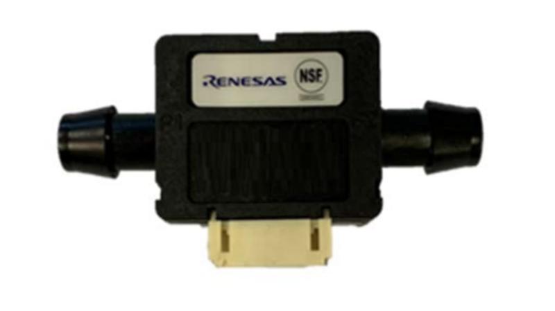 The Renesas Electronics liquid flow sensor module measures the flow rate using the thermo-transfer (calorimetric) principle. It offers key advantages over resistor based flow solutions. The sensor utilizes thermopile sensing, which provides an excellent signal-to-noise ratio. The sensor comprises a solid thermal isolation technology with protective coating. The non-linear flow output curve allows for sensitivity from low to full-scale flow rates. It provides analog output._x000D_