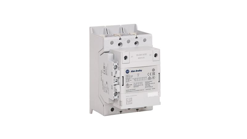 The Rockwell Automation Contactor,IEC,146 A,48-130V 50-60 Hz/48-130V DC has 3 NO Poles,1 NO 1 NC Auxiliary Contacts, Cable Clamp Connections._x000D_
