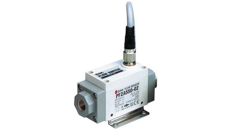 PF2A Air Flow Switch_x000D_ In-line thermal flow switch with digital display and two outputs. The outputs can be set to switch when a specific flow rate or volume is reached, or they can provide a pulse for every 0.1 - 5 litre of flow volume depending on model._x000D_ Very low pressure loss_x000D_ Red 3-digit LED display can be rotated through 270°_x000D_ 2 switched PNP outputs_x000D_ Key lock feature_x000D_ No moving parts_x000D_ Easy installation_x000D_ Environmental protection to IP65