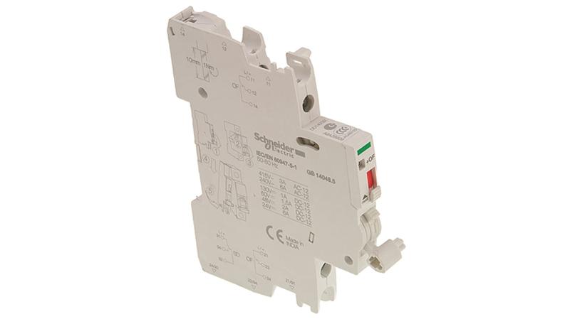 Mount this auxiliary contact from Schneider Electric to your contactor, logic controller or hardware control unit for dependable secondary power switching. Once physically attached, it's in prime position to transmit data from the circuit, enabling tripping or remote indication of your contactor's state so you can quickly identify a fault. It has a NO/NC (normally open/normally closed) contact configuration and mounts or clips easily onto compatible contactors. As this device is a double open/close or fault-indicating contact, it's a two-in-one choice._x000D_