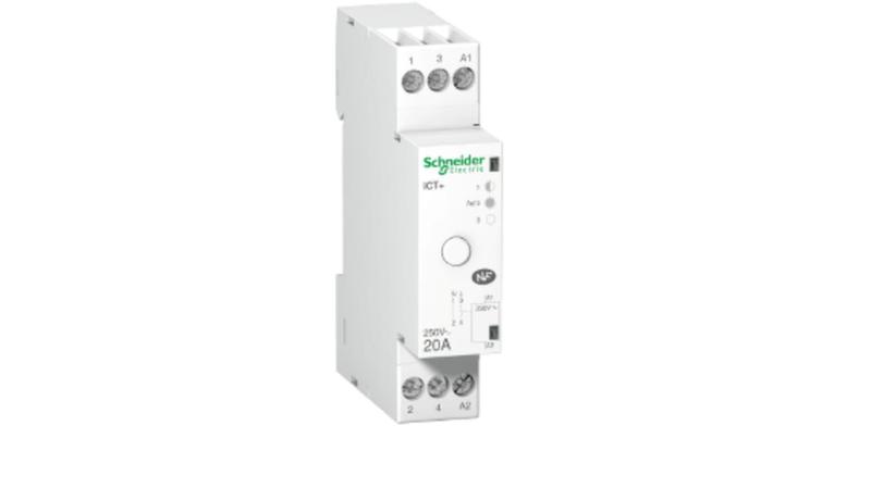The Schneider Electric This Acti9 iCT+ is a modular silent contactor. It is a 1P remote and manual control device with 1 normally open contact. The rated current is 20A for AC-7a and 20A for AC-7b. The Ue rated operational voltage is 250VAC. The Uc control voltage is 230VAC. This product is compliant with EN/IEC 60669-2-2._x000D_