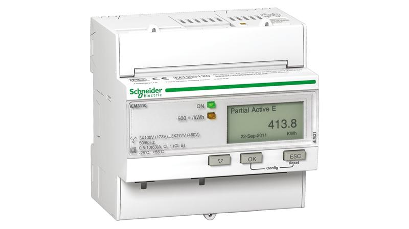 Schneider Electric Energy Meter, DIN Rail Mounting, 0 to 63A Current Measurement - Acti 9 iEM3000 Series - A9MEM3110_x000D_
