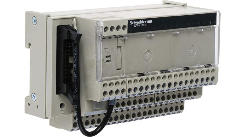 Telefast 2 pre-wiring systems consist of modules that connect to the PLC via a multi-core cable fitted with HE 10 connectors._x000D_