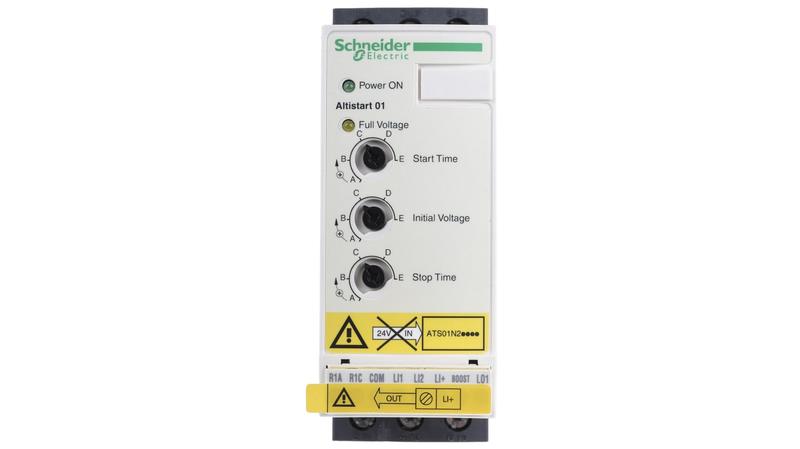 Schneider Electric Soft Starters - Altistart 01 Series_x000D_ Created and designed to operate as a torque limiter on starting, or as a soft start or soft stop unit for asynchronous motors. This range of soft starters enhances the starting performance of asynchronous motors by allowing them to start smoothly, gradually and in a controlled manner. They are compact and easy to install, the Altistart 01 series can be mounted side by side._x000D_ Features & Benefits_x000D_ Prevents mechanical shocks_x000D_ Reduces wear and tear_x000D_ Reduces the amount of maintenance work_x000D_ Reduces production town time which in turn keeps production level up_x000D_ Because the Altistart 01 series limits the starting torque and current peas on starting machines which do not require a high starting torque, it is the perfect solutions for applications such as conveyors, pumps, fans, compressors, small cranes, conveyor belts and much more_x000D_ Complies and adheres to IEC/EN 60947-4-2, carries UL, CSA, C-Tick, CCC certifications and e marking_x000D_ There are three ranges that create the Altistart 01 series, these are ATS 01N1, ATS 01N2 and ATSU 01N2
