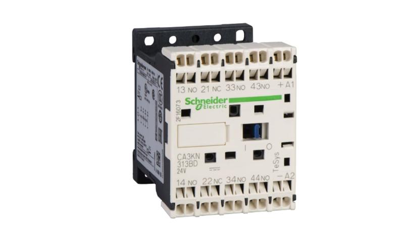 The Schneider Electric TeSys K control relay, 4 contacts (4NO), 10A/690V, for control of electromagnetic loads AC-15/DC-13. It provides a 24V DC control circuit with no inrush consumption, connection by spring terminals. Multi standards certified (IEC, UL, CSA, CCC, EAC), Green Premium product (RoHS/REACh)._x000D_