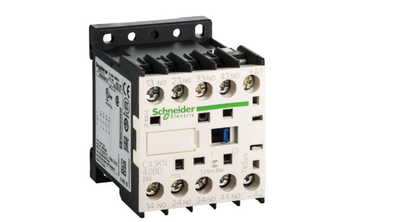 The Schneider Electric TeSys K control relay, 4 contacts (4NO), 10A/690V, for control of electromagnetic loads AC-15/DC-13. For high operating rates until 180 cycles/min and ambient temperature -25/+50°C, it procures high reliability and durability._x000D_