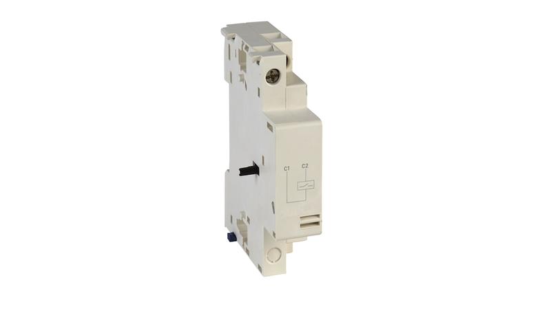 The Schneider Electric TeSys GV electrical trip unit, MX shunt trip, 220-240V AC 60Hz, for motor circuit breakers GV2, GV3. It trips the circuit breaker when the control voltage is applied in limits 0.7-1.1 Uc with an impulse duration greater than 20ms or a maintained signal. To be mounted on the right-hand side of the circuit breaker, connection by spring terminals._x000D_